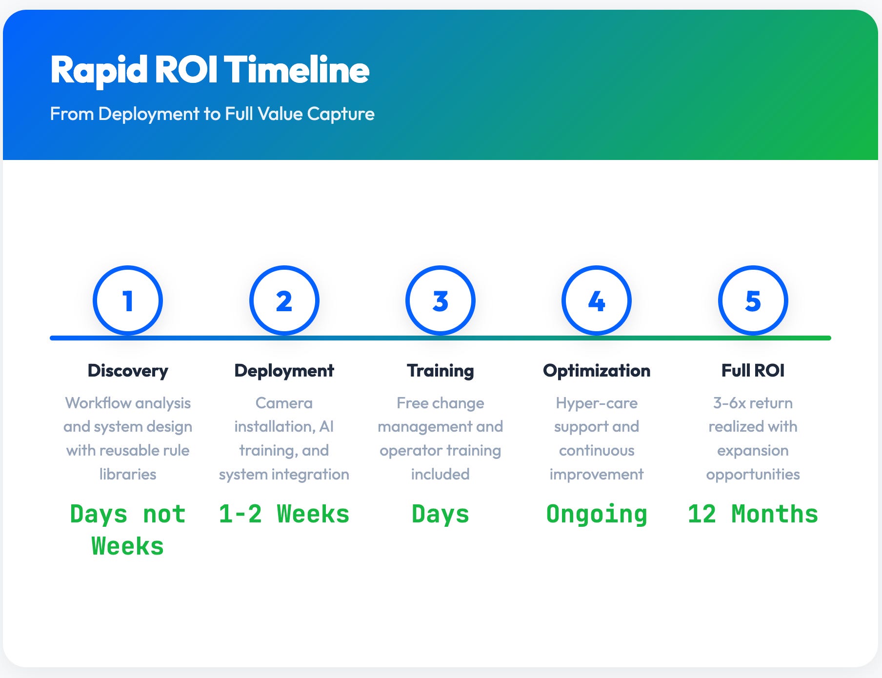 And so we start with that as our DNA. And so I call it kind of the three V’s at each category, the gate, the yard, and the dock. Are we providing velocity, visibility, which is efficiency, and then value at each of those areas? And can we ROI each of those? Because they can be modularized in enterprise. They may have made some investments, but they want to start. So that has to ROI. It has to cost benefit. So we lead with cost benefit to value. And we’re typically, because of the the benefit of all the hard work investment we made in AI, we’re seeing ROIs inside of 12 months and that’s three to six times our ROI because again, we’re able to come in lot less expensive, 10 times the capabilities, less time to deliver and really easy to use. So a great question. It’s our most important question.