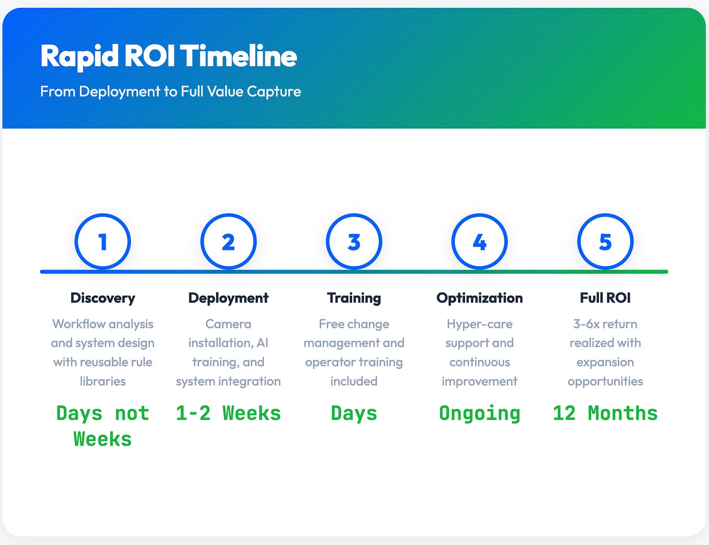 There’s just a lot of complexity to build multiple model pipelines to then be able to instantaneously convert that data into meaningful insights and tracking. And so within typically less than two seconds, we’ve scanned the type of power unit. trailer chassis ran all the IDs done some database correlation seamlessly integrated with TMS WMS. We have a really good sense of who this is, what they have, where they should go, how quickly we can turn this around.